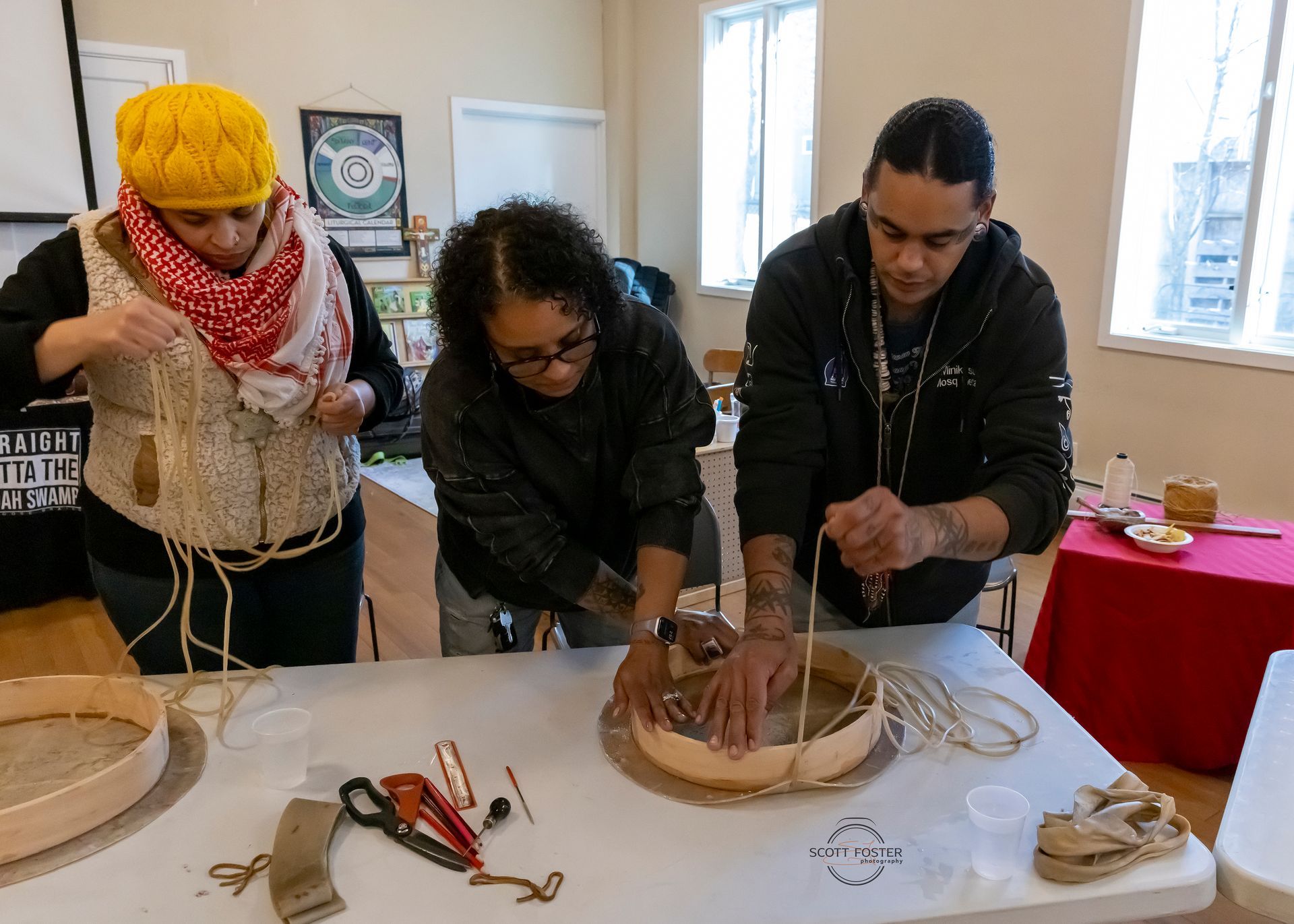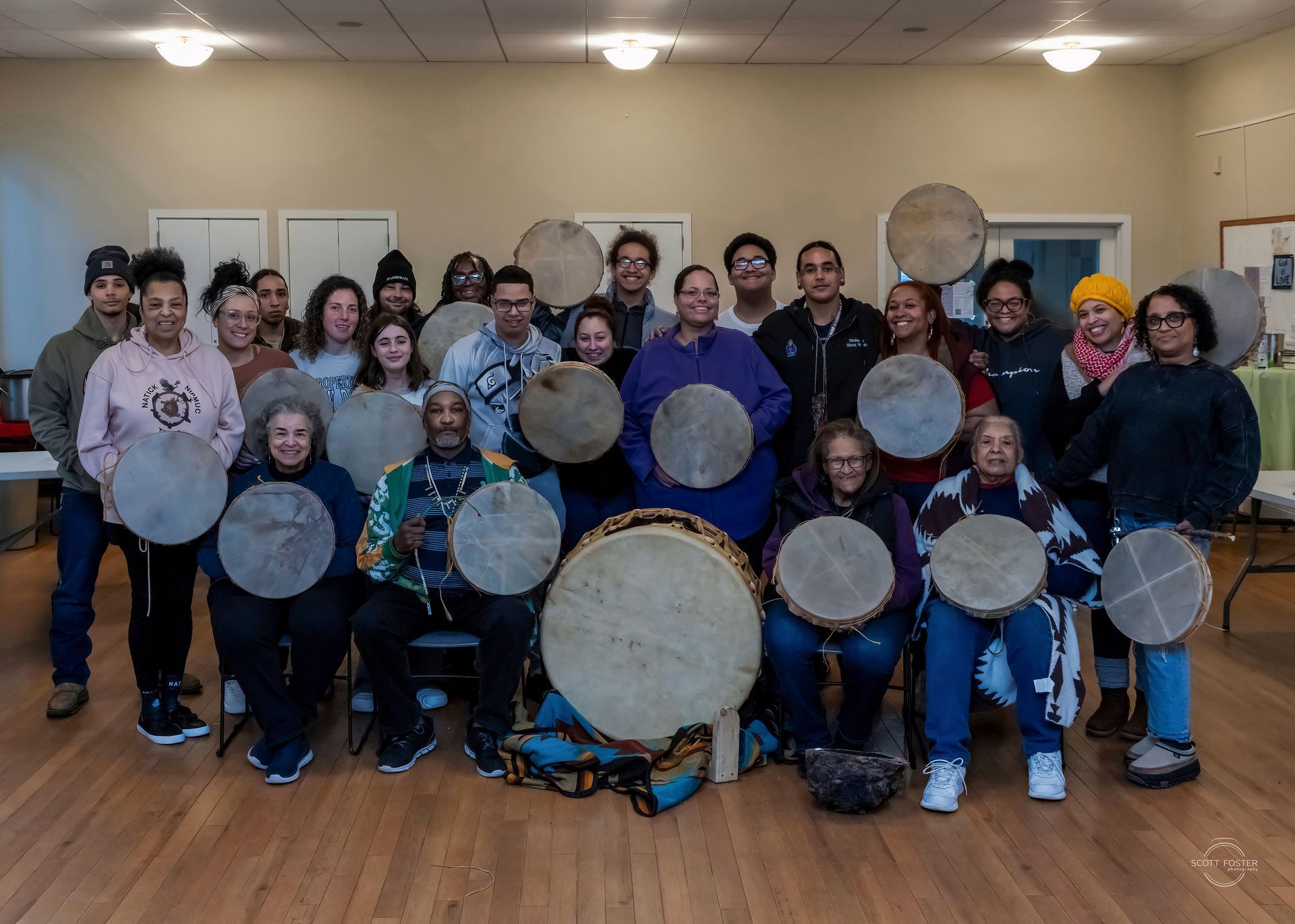 No Loose Braids and One Circle STITCH came together to host a drum workshop for our relatives in the Natick region. But this gathering was more than just a workshop —it was a space for knowledge- sharing, connection, and accountability.